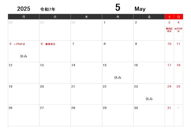 2025年5月カレンダー